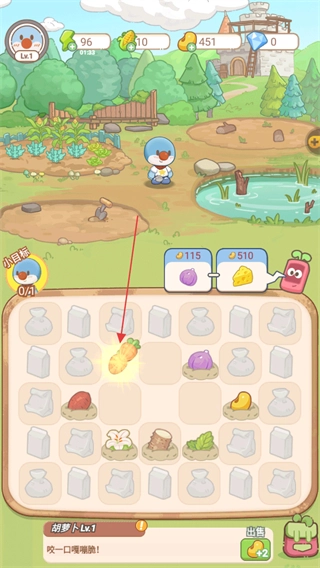 1. 点击农作物所在土地进行挖掘操作,即可获取基础农作物胡萝卜。