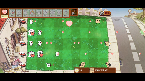 玩法和《植物大战僵尸》类似,不过存在一些细微差异。这里的角色变成了小狗,而且每只小白和小鸡毛都各具特点与技能,不得不说这样的设定很贴心。