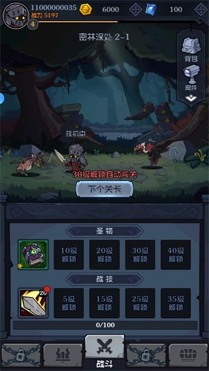 1. 进入游戏后,在战斗页面点击“下一个关卡”开启闯关。进入关卡后,角色将自动对敌人发起攻击。