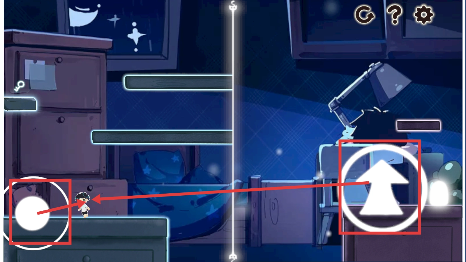 1、操控游戏角色,借助左侧与右侧的操作区域来实现移动,于房间场景内展开探索,从而开启冒险之旅。