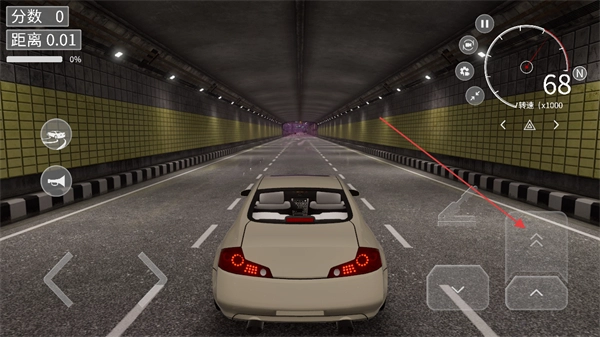 3、右侧分别有油门和刹车踏板,以及手刹按键,点击长按油门踏板启动车辆。