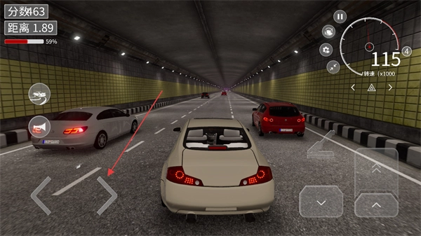 4、遇到前方车辆阻碍道路行驶时,可以利用左下角的转向按键进行换道。