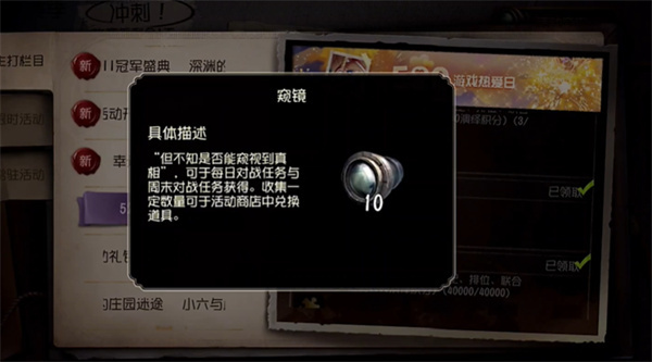 同样也是每周第5天签到,可获得10窥镜。
