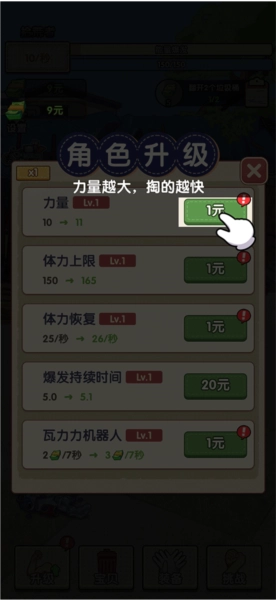 点击左下角的升级功能,就能通过提升角色的力量、体力等属性来增加其速度。