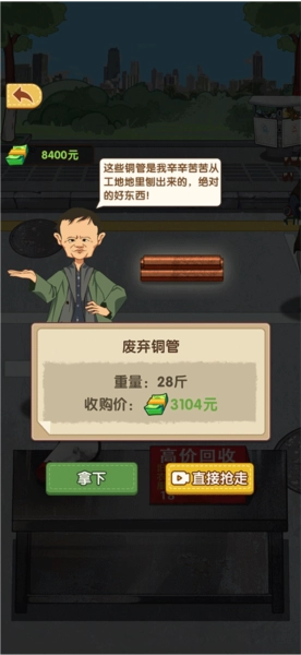 要是感兴趣,你可以选择拿下或者直接抢走;要是不感兴趣,就点击左上角返回去挑选其他废品。