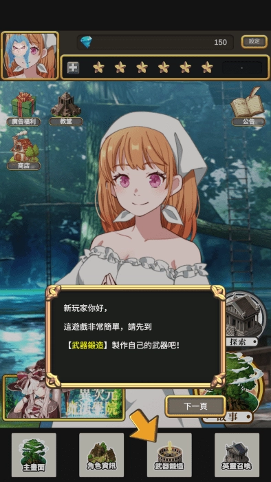 《武器锻造师》是一款充满趣味的异世界冒险探索类RPG游戏,采用竖屏画面设计,操作轻松又富有趣味性,邀请你开启一段别具一格的异世界探索之旅!在游戏里,玩家可以在这片奇幻的异世界中自由探索,操控角色展开惊险的探险。通过不断升级角色,解锁各种强大的技能,提升自身战斗力,从而能够从容应对任何危机。你需要在持续的战斗中提升等级与实力,同时还有更多精彩的冒险等待你去挑战!