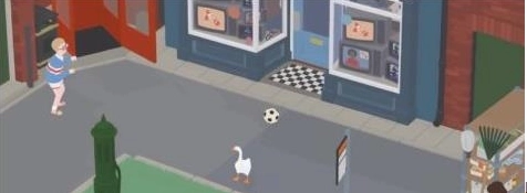 这个和把“小男孩困在电话亭”一起做,小男孩打电话会把电视商店里的老板叫出来,然后趁机进入商店,把门口按钮按一下,然后小白鹅就上电视了。