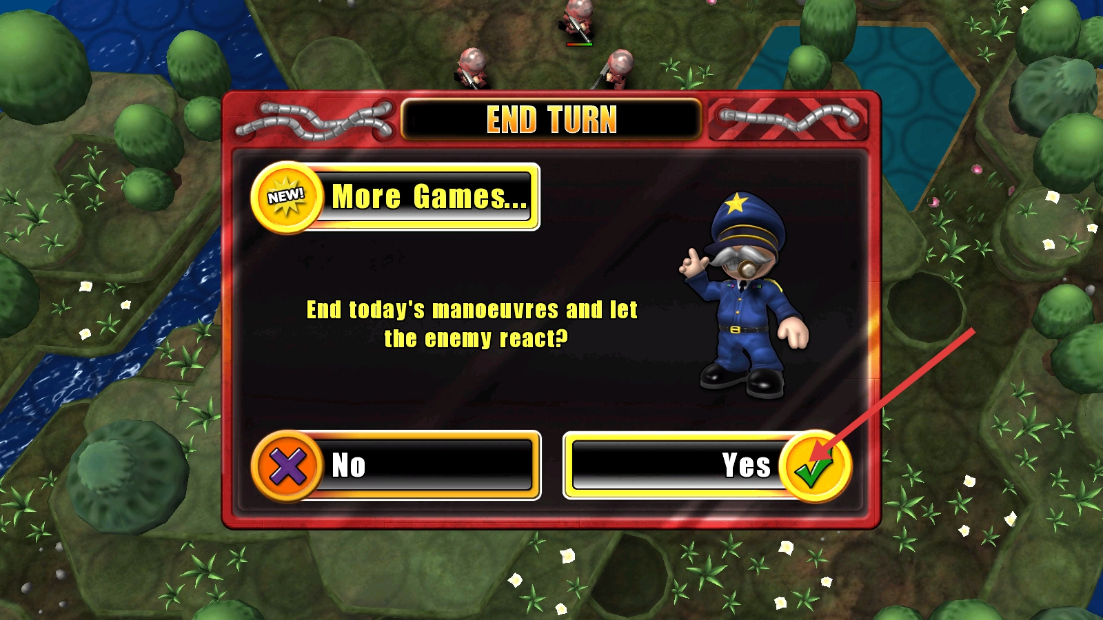 完成当前回合的操作后,点击【Yes】按钮确认结束回合,这样敌人就会做出反应,游戏进程也会随之推进。