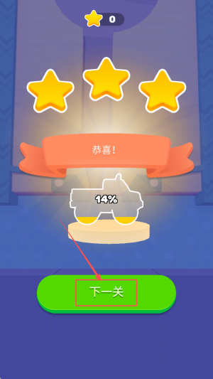 弹出「恭喜!14%」后点击「下一关」,就能马上进入难度更高的地图。