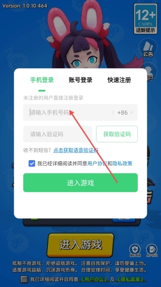 打开游戏,点击【同意并进入】。