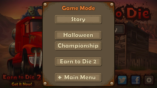 打开战车撞僵尸的最新版本,点击play按钮进入游戏,接着选择游戏模式,目前游戏包含故事模式、挑战模式等多种玩法。