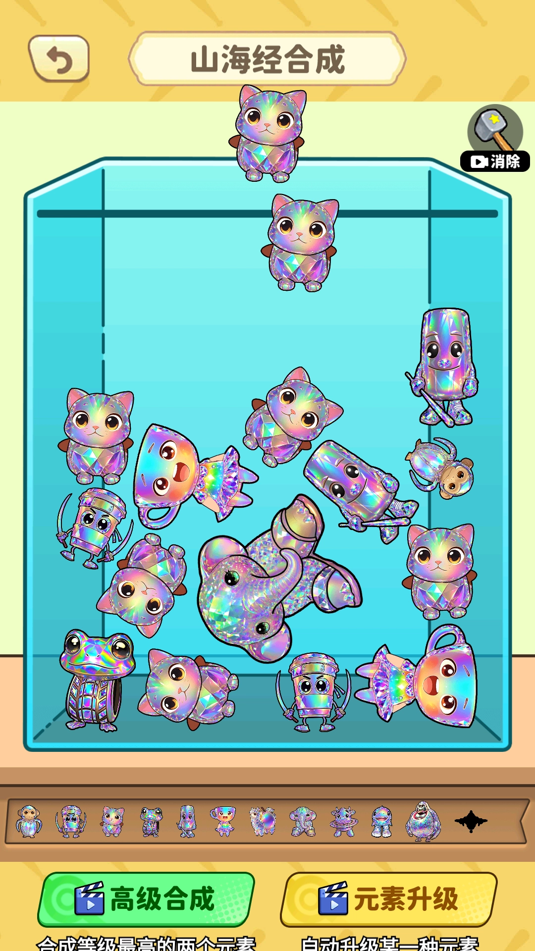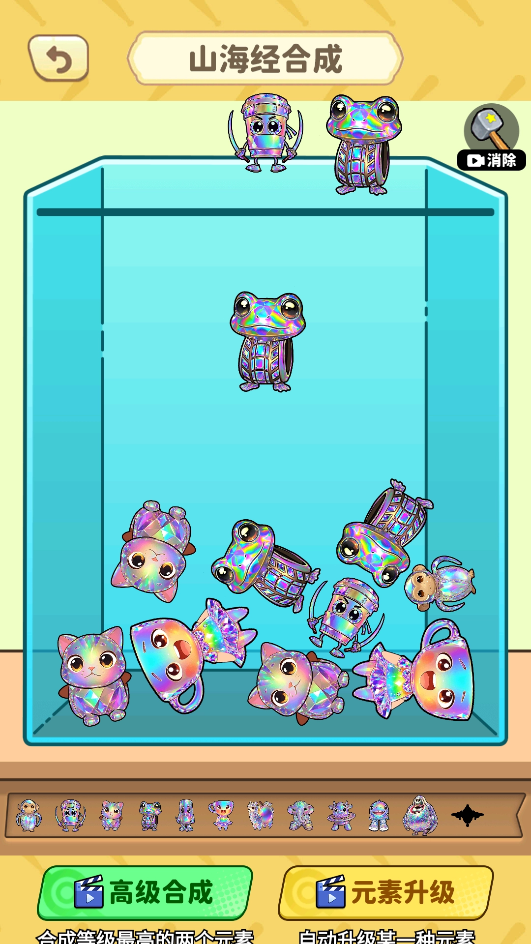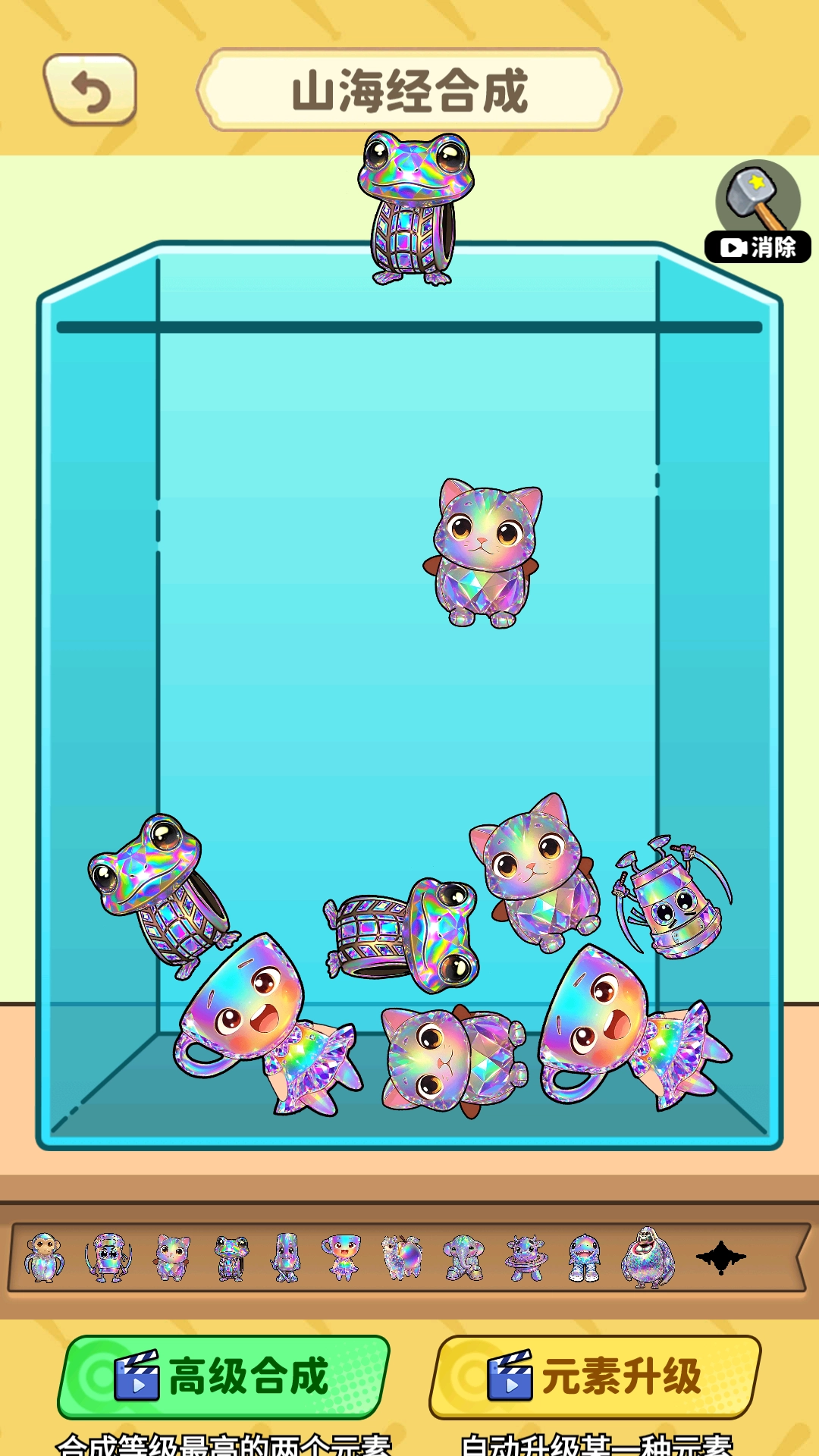 最终目标是合成出传说里的神兽,这类神兽具备强大的能力与震撼的外形,是合成过程中的终极成果。