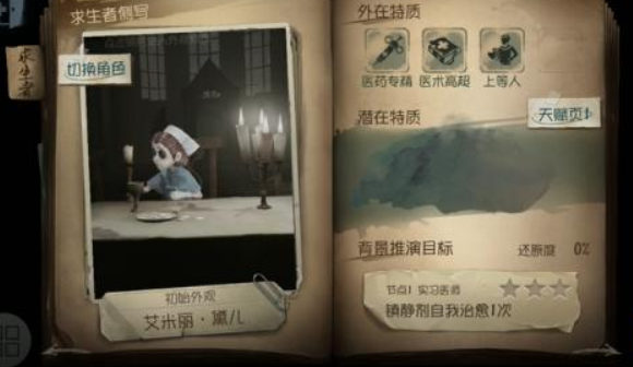 在笔记本里能查看已解锁的角色,我们选择医生角色进行查看。角色界面的左侧支持直接切换角色,右侧则展示着对应角色的相关资料。