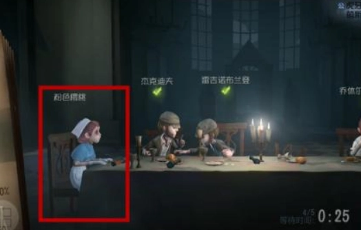所有案件还原的准备工作完成后,画面会切换到求生者围坐在桌子旁的场景。在这里,我们既可以使用默认角色,也能通过左侧的笔记本进行角色切换选择。