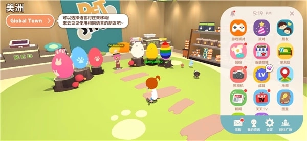 在广场见新的朋友, 去购物或去游戏厅玩一场迷你游戏