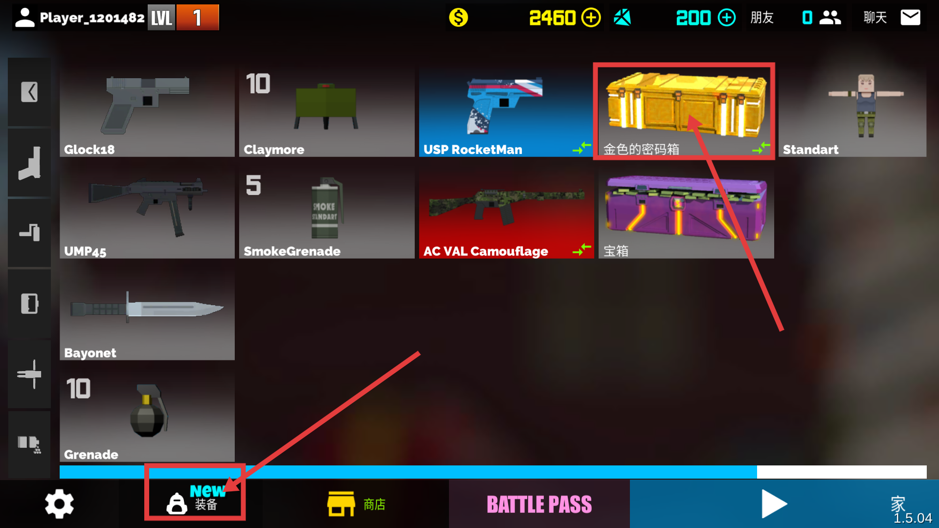 进入【装备】界面后,找到【金色的密码箱】,就能启动获取稀有道具的流程,建议优先查看这个宝箱的奖励详情。