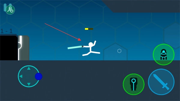 你可以通过左侧的虚拟摇杆来控制火柴人的移动方向,让它从起始位置开始,去探索整个关卡的内容。