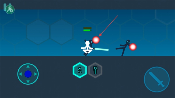 在战斗过程中,要避开敌方火柴人发射的红色光球攻击,与此同时使用长剑进行反击,以此来消耗对方的血量。