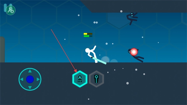 点击右侧剑形按钮,火柴人就会挥舞长剑攻击敌人,还能完成跳跃攻击之类的动作。