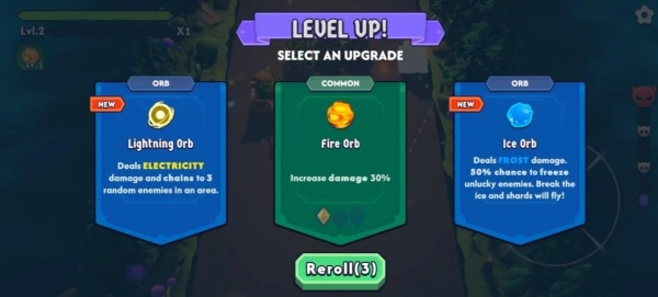 在击败敌人后拾取它们掉落的物品,再依据当下的战局状况挑选不同的强化方向,比如增强元素攻击的威力、让弹射的次数有所增加,或是解锁全新的球体特效。