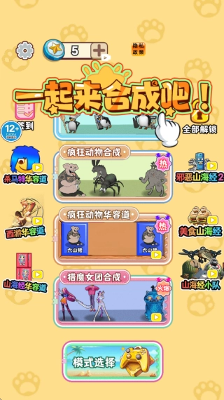 在疯狂动物合成玩法里,玩家得依据动物的体型尺寸进行合成操作,得留意,要是动物把屏幕完全占满了,挑战就会宣告结束!