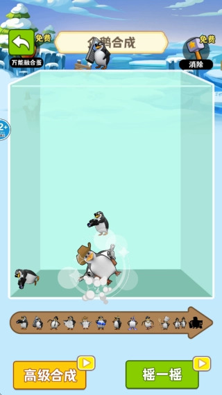 在企鹅合成玩法里,轻点屏幕就能让画面上方的企鹅表情包掉落,相同的企鹅可以合并升级,持续合成升级来获取更高分数吧。