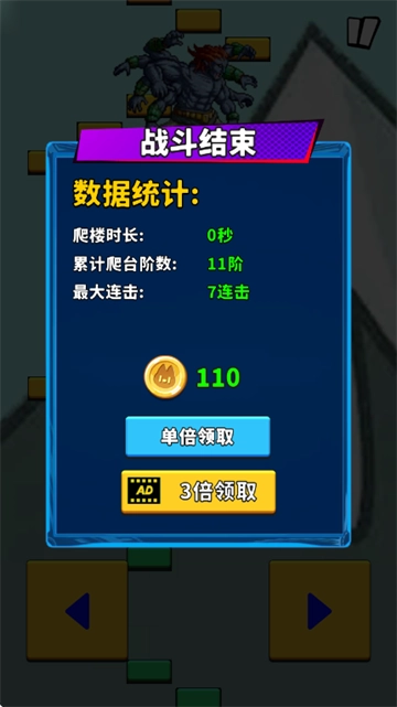 进入游戏后,下方的两个按钮分别用来操控左右方向,只有通过爬楼才能对敌人发起攻击。