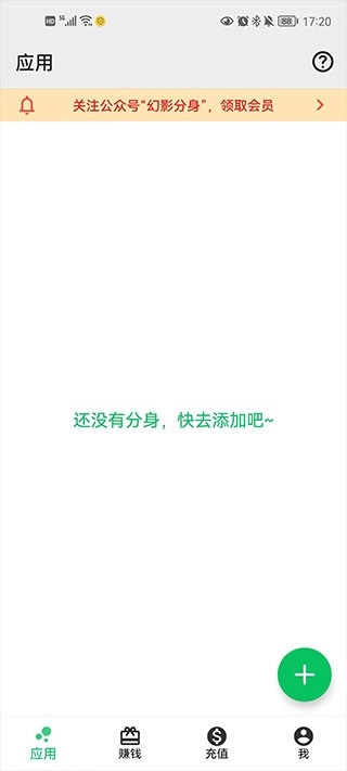 启动您在本平台获取的幻影分身安卓应用,待主页面加载完成后,找到并点击界面上的加号按钮。