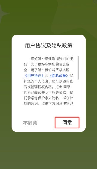 启动应用时会展示用户协议页面,点击“同意”按钮后就能进入皮肤领取平台。