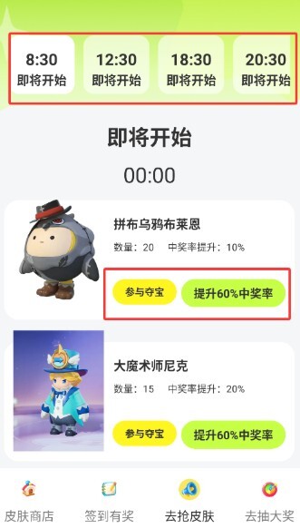 限时夺宝活动会分时段开启,参与抽奖就有机会获得珍稀皮肤与游戏道具。
