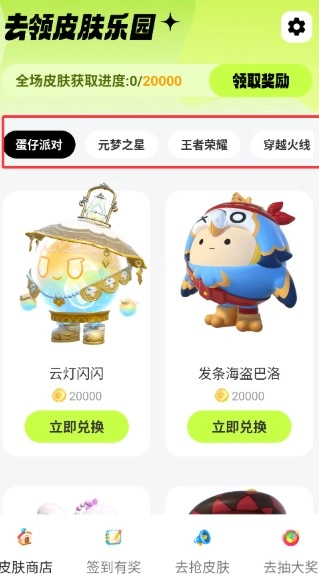 皮肤商城按热门游戏分类呈现,涵盖蛋仔派对、王者荣耀等主流游戏道具
