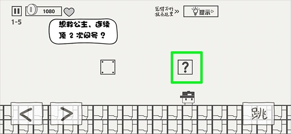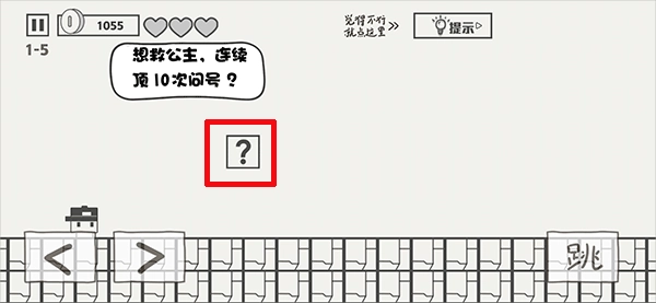 进入游戏后,在普通难度的关卡选择界面找到第五关并进入。这一关开始时,你需要先点击红色方框里的问号标记,总共点击八次。