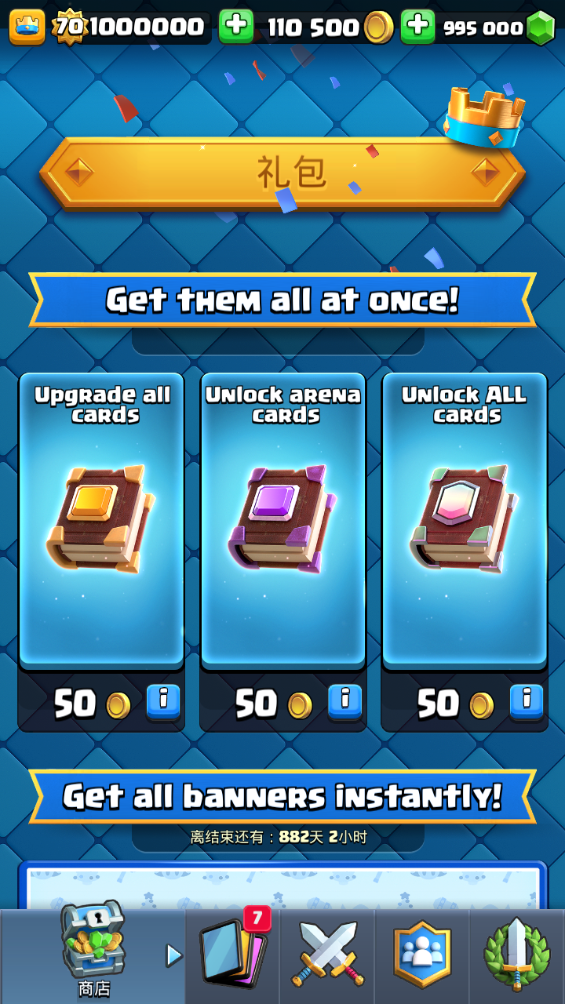 玩家初次进入游戏时,会得到一座“建筑工人小屋”,以及各一座等级为1的“大本营”“金矿”和“兵营”,同时还会拥有750点“圣水”与750点“黄金”。首次进入游戏会开启引导模式,帮助玩家熟悉游戏中的建造、升级、提速和解锁等操作方式。
