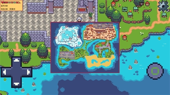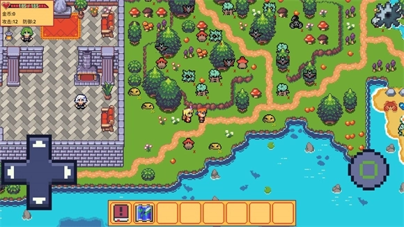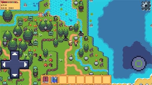 5、拾取地图里的水果和蘑菇可以提升角色的属性,击败怪物能获得金币,金币可以和NPC交易来提升属性。