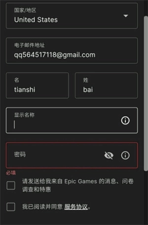 2、在第二步中,国家/地区默认设置为【中国】,但你必须选择其他国家或地区。否则,完成注册后,当你尝试登录时,系统会提示【对不起,您使用的凭证无效】。一旦出现这种情况,这个邮箱就无法再用于登录Epic了,你只能更换一个新邮箱。建议选择美国或日本作为国家/地区。