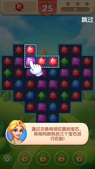 2、只需交换相邻的宝石,使三个或更多同色宝石连成一线即可实现消除。
