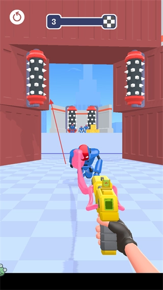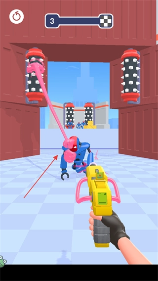 1、进入第3关游戏场景,操控手中的黏胶枪,点击屏幕上的橡皮敌人发射黏胶进行攻击。