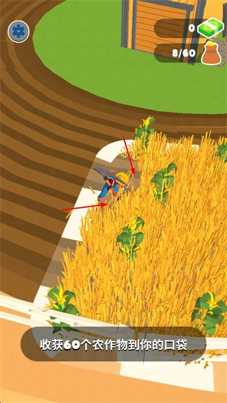 游戏以通过收割庄稼获取金币,以及升级镰刀提升收割速度作为核心目标。玩家的每一项操作均紧密围绕这一目标进行,不存在含糊不清的任务要求,使得玩家在游戏过程中始终能明确知晓自己的前进方向。