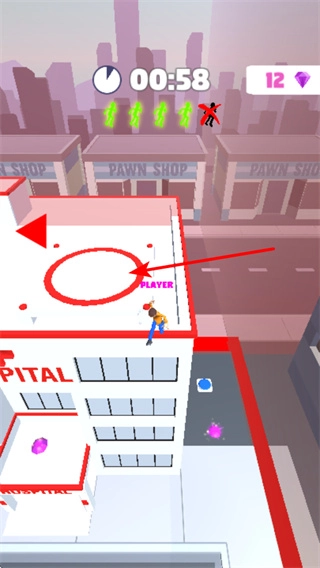 4、完成区域目标,楼顶的红色圆环区域完成互动或任务,达成区域目标,获取奖励,解锁区域。