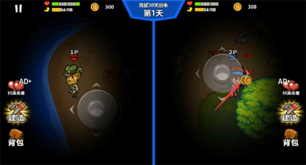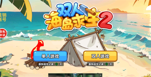 1、双人海岛求生2,点击进入游戏主界面,有单人,双人游戏模式选择。