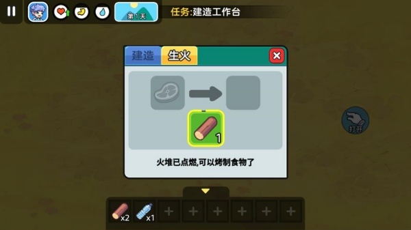 2、随后走近工具台,界面上会出现打开按钮,点击该按钮一次。