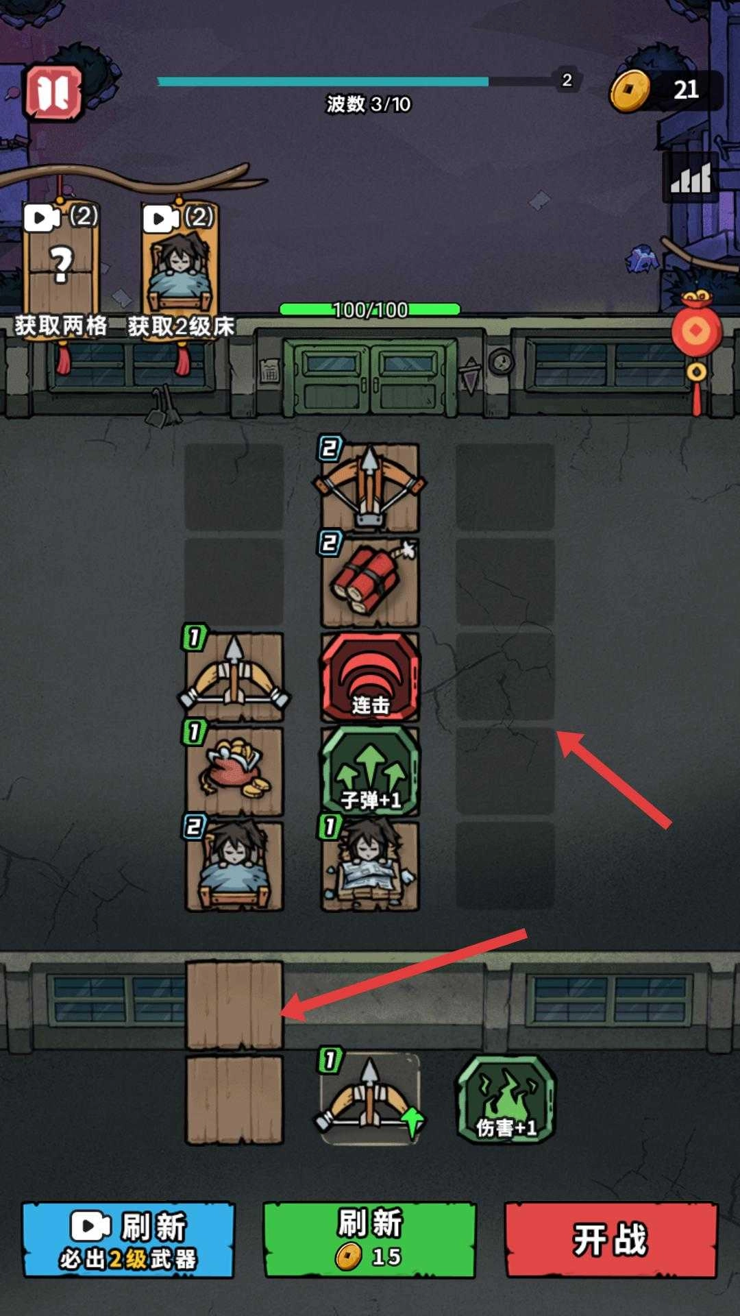 2、每一波都会出现不同数量的敌人等你去消灭,各种强化效果可以自由选择来搭配。