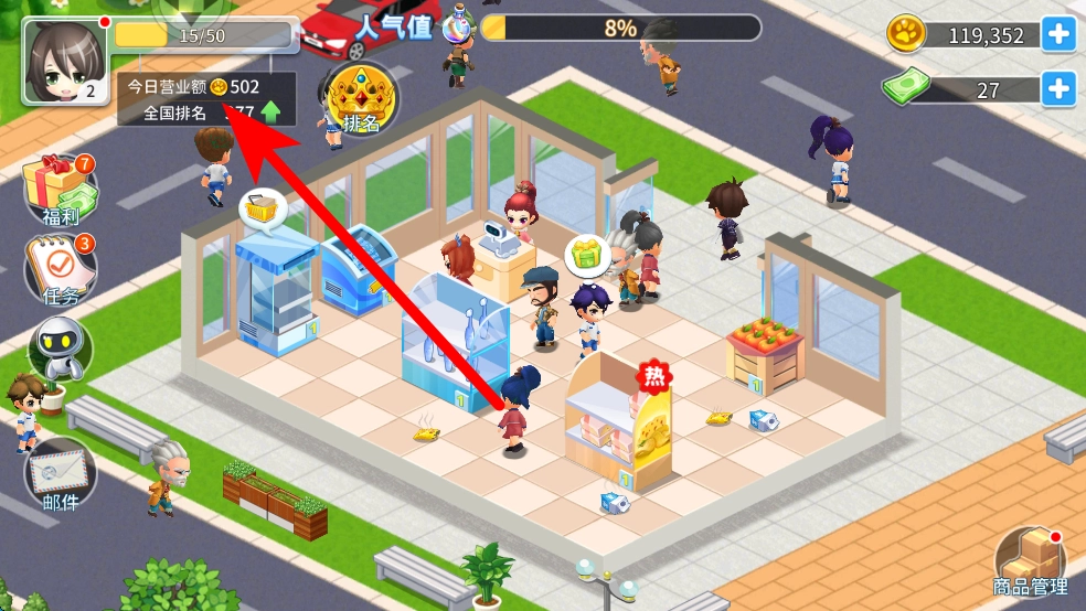 3、聚焦营业额与排名,借助上架热门商品、及时补货来提升营业额。营业额的增长能够提升全国排名,让你收获更多经营成就感。