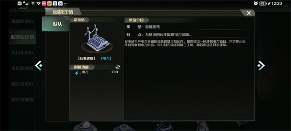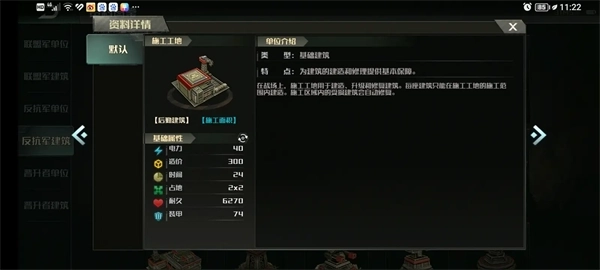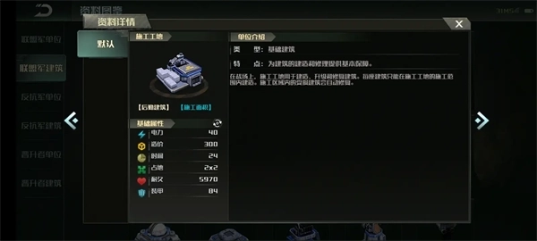 本文专门统计所有建筑的详细数据,联盟军和晋升者的建筑数据基本一致,所以放在一块说反抗军因为建筑数据有些差别,单独列表
