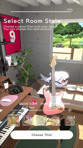 3、随后,在五种风格各异的房间里挑选一个心仪的场景,正式开启游戏后,你便能瞧见角色正安静地坐在桌前。