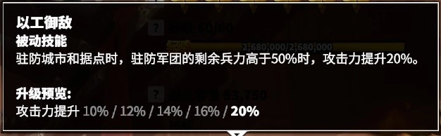 阵容解析:步兵阵容的特点是生存能力强,反击伤害高,有大量的防御和治疗手段,是驻防和承伤的好手,攻略魔兽不可或缺的角色。但步兵培养成本很高,野战表现一般,主要高光在驻防和攻路魔兽上,推荐作为第三队或第四队培养。