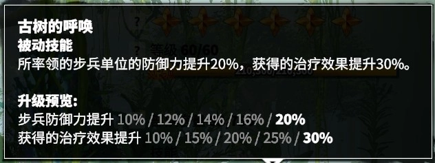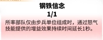 葛如卡的天赋为【步兵】、【野战】、【机动】三种,步兵天赋中的钢铁信念极为契合葛如卡,所以建议天赋主加【步兵】: