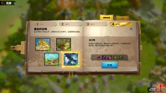 回到主界面,第二个按键是见闻,我们可以在这里看见游戏的赛季故事(主线任务)和闲谈(支线任务)。