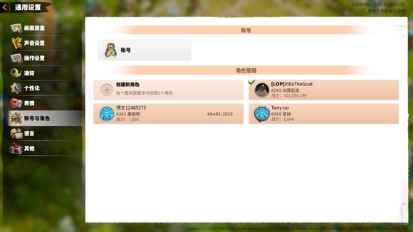 第三个是账号切换功能,点击账号与角色—账号—右下角切换账号即可。