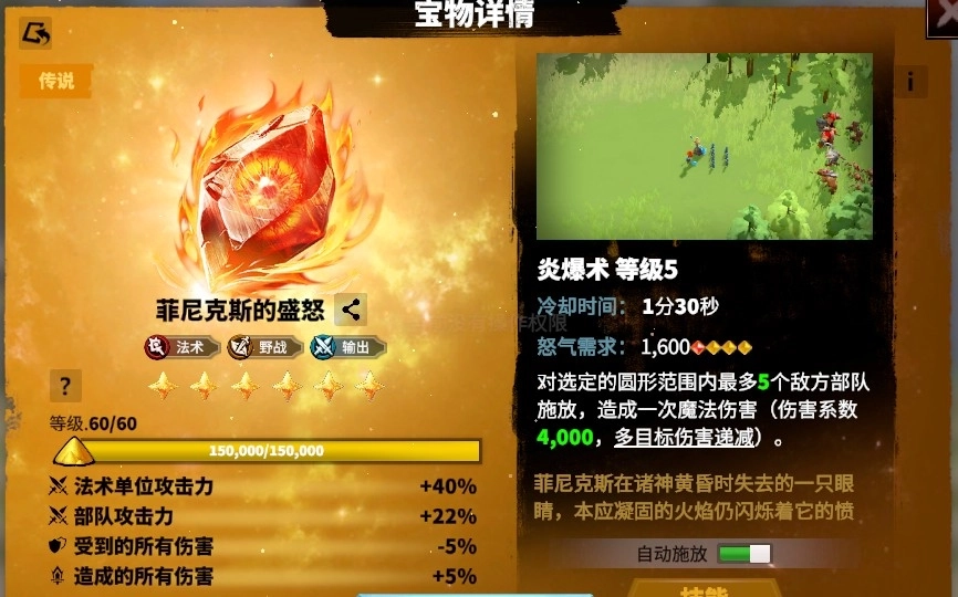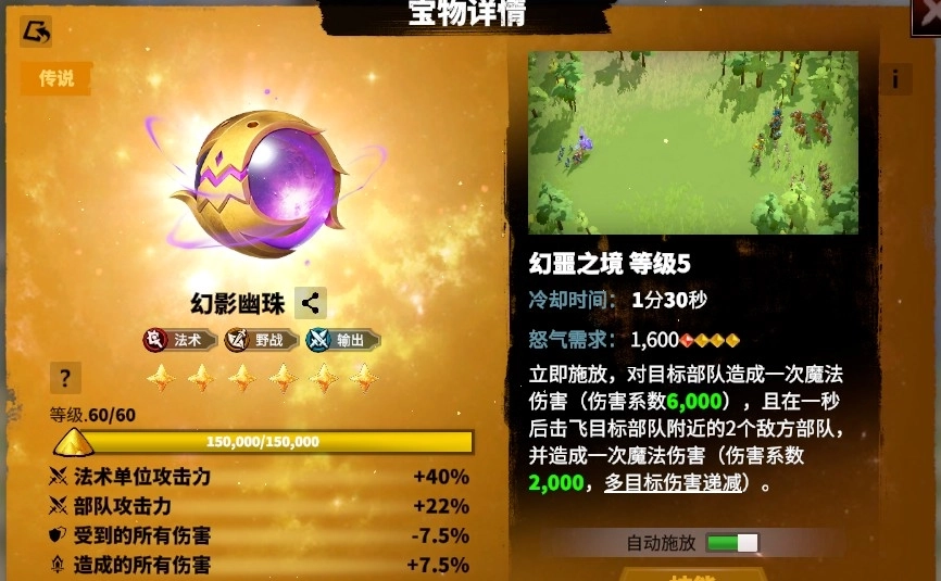 法术通用宝物,属性契合法师队,主动技能伤害也还不错,是较为适合贝特兰德使用的宝物。
